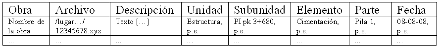La pregunta difícil es saber cuantos campos más harían falta, el nombre del eje, el pk, las coordenadas. Por otra parte nunca se podría estar seguro de que no se necesitara en un futuro otro campo más, con el consiguiente trastorno de volver a editar la tabla con los documentos ya editados.